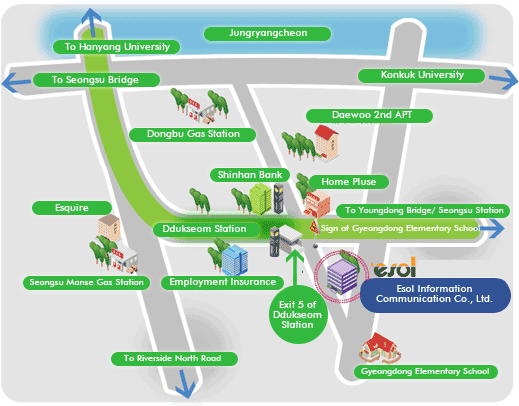 toward Seongsu Station, and drive about 100m. Esol